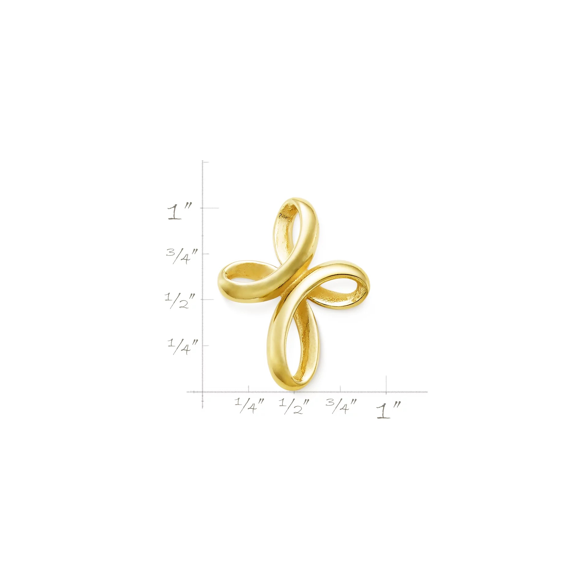 A symbol of unending faith and eternal love, a beautiful cross is formed by the flowing contours of a single ribbon in 14K gold.